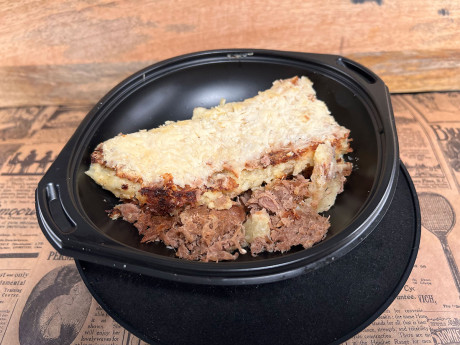 Effilochée de canard, Pommes de terre, Emmental gratiné, Oignons