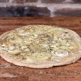 La pizza 4 fromages : un mélange fondant et savoureux de fromages qui ravira les amateurs de goût intense.