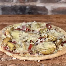 La pizza Savoyarde : une invitation à la montagne, avec ses pommes de terre, lardons, oignons et reblochon.